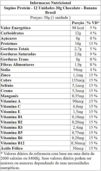 Em até 1x de R$ 39,99 sem juros Banana Brasil Display Barra De Proteína Supino Protein Chocolate – 12 Unidades De 30G