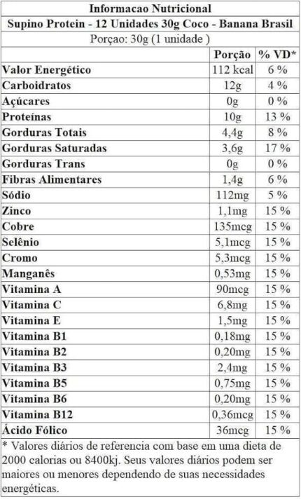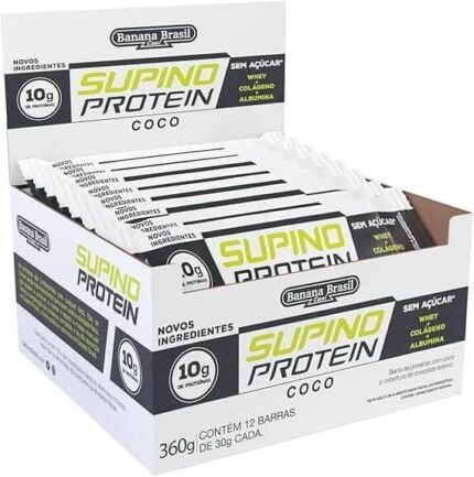 Em até 1x de R$ 29,99 sem juros Banana Brasil Display Barra De Proteínas Coco Com Cobertura De Chocolate Branco Caixa Com 12 Unidades De 30G