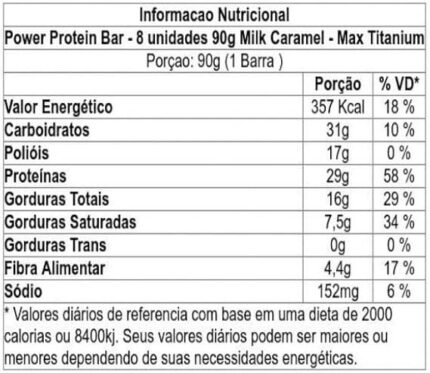 Em até 3x de R$ 22,76 sem juros Max Titanium Power Protein Bar (8 Unid – 90G) – Sabor Milk Caramel