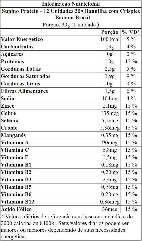 Banana Brasil Display Barra De Proteína Supino Protein Baunilha Com Crispies – 12 Unidades De 30G
