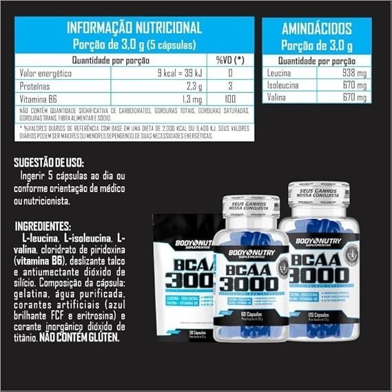Seja o primeiro a avaliar “BCAA 3000 120 Capsulas Aminoacidos Essenciais Enriquecido com vitamina B6 Sem Sabor Ultra Concentrado Rapida Absorção Importado Original”