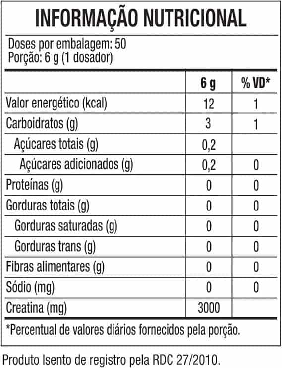 Sem Sabor: creatina monohidratada e maltodextrina.