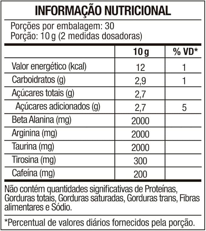 | Porção recomendada | Diluir 10g (2 medidas dosadoras) em 1 copo contendo 200 ml de água gelada |