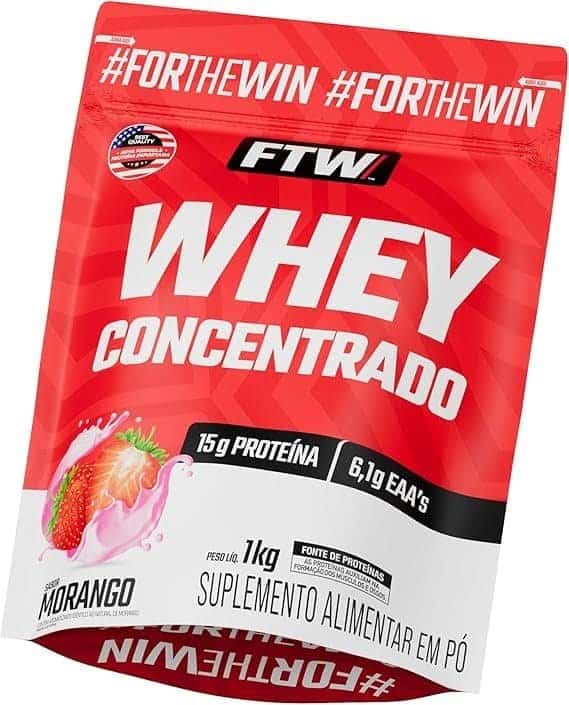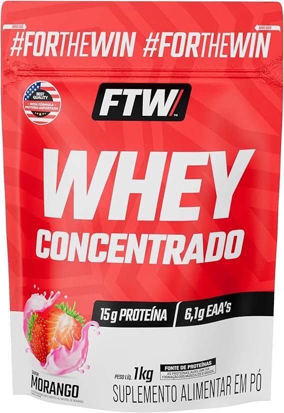 FTW Whey Concentrado com Proteína Concentrada WPC, Suplemento Alimentar em Pó com 15g de Proteína por Porção, Rico em Aminoácidos Essenciais, Sem Glúten – Refil 1KG (Morango)