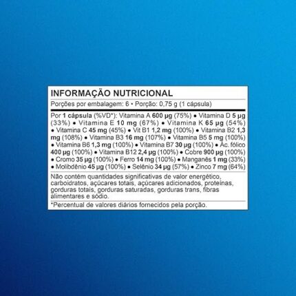 - ALTA BIODISPONIBILIDADE: contém o complexo b completo, máxima sinergia entre os micronutrientes e sem ingredientes inócuos e com quatro antioxidantes para ação contra radicais livres.