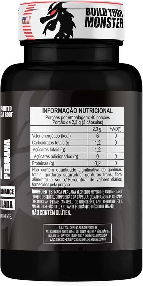 Maca peruana (Lepidium meyenii) e antiumectante dióxido de silício. NÃO CONTÉM GLÚTEN.