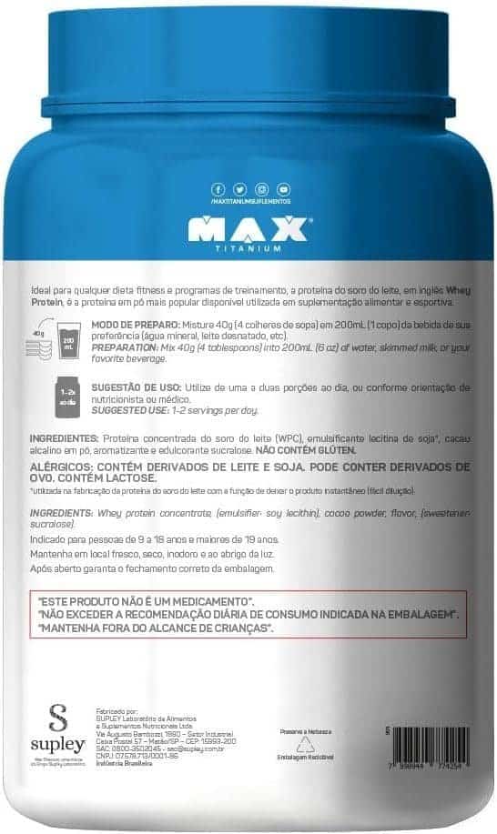 Max Titanium Whey Pro Pote 1kg – Sabor Chocolate