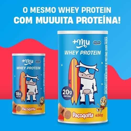 Tá procurando um lanchinho proteico e gostoso pra matar aquela fominha da tarde? Então, vem provar nosso Whey +Mu de Paçoquita (sim, com Paçoquita de verdade!). Ele possui 20g de proteína concentrada do soro do leite e tem zero adição de açúcares. Além disso, ele é suuuuper gostoso e cremosinho! Ahhh, lembrando que por ele ter uma boa quantidade de proteína, o Whey +Mu nos ajuda a saciar a fome por mais tempo e a não sair por aí comendo tudo o que vemos pela frente na próxima refeição! =) É gostoso, é saudável, é Mais Mu!