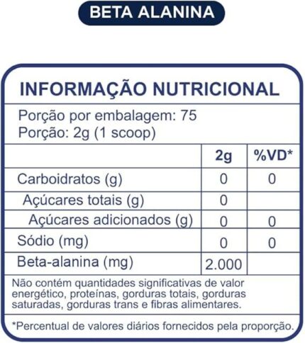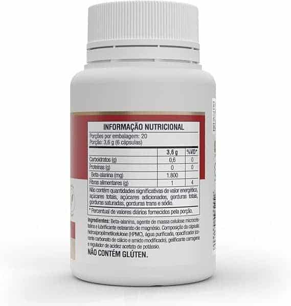 | Nome do produto | Beta Alanina – 120 Cápsulas de 500mg |