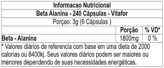 | Nome do produto | Beta Alanina – 240 Cápsulas de 500mg |