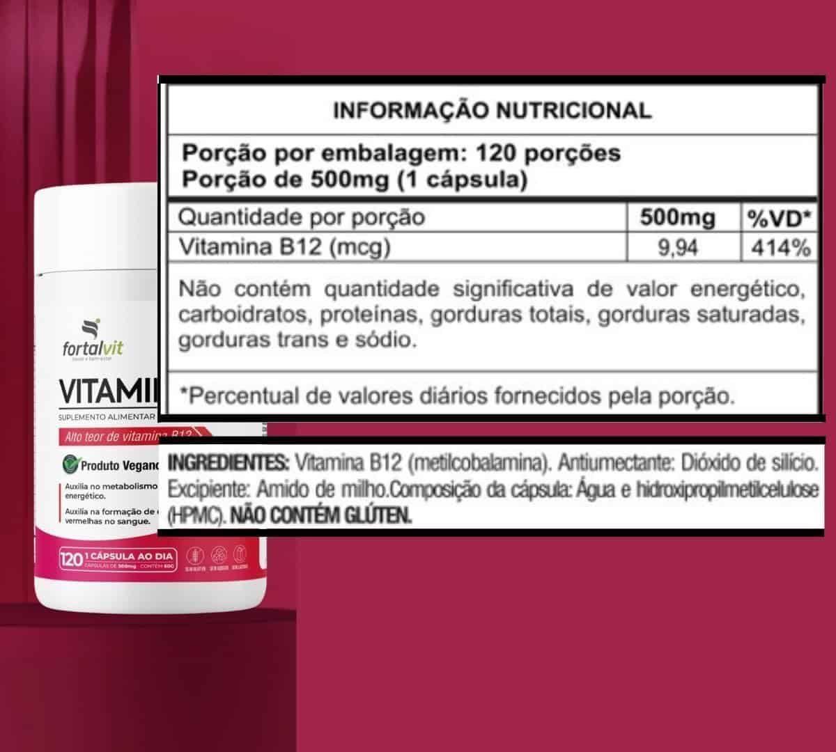 - Suplemento Vegano: As cápsulas de Vitamina B12 da Fortalvit são 100% veganas, perfeitas para quem segue uma dieta livre de produtos de origem animal.