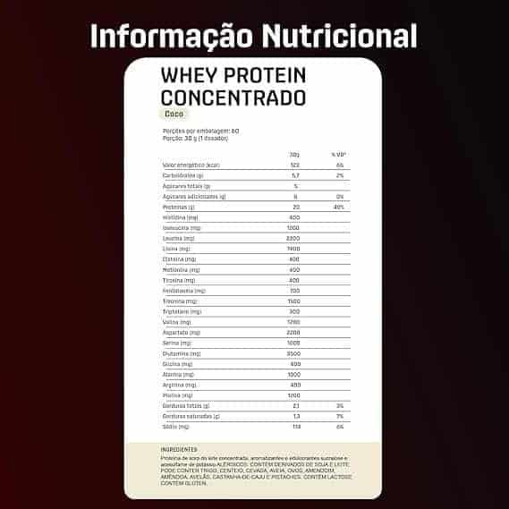 O Whey Protein Concentrado Dux Nutrition é composto por proteínas de alto valor biológico e rápida absorção, além de gorduras essenciais, carboidratos e uma ampla gama de aminoácidos, fundamentais para garantir a síntese muscular acelerada após a prática de esportes. É ideal para ser consumido antes e depois de treinos, mas também pode fazer parte do café da manhã ou servir como um lanche entre as refeições, e em outros momentos conforme a orientação do seu nutricionista. Se há um nutriente indispensável, é a proteína. Ela é feita de aminoácidos, que são os blocos de construção do nosso corpo. A proteína do soro do leite, em inglês “Whey Protein”, é uma das fontes de aminoácidos de melhor absorção, maior até que o frango ou peixe. Isso torna o Whey uma forma conveniente de ingerir proteína, melhorando a saúde, o bem-estar e os resultados dos treinos. BENEFÍCIOS: > Não contém goma xantana, complexos vitamínicos à base de maltodextrina, espessantes, estabilizantes, conservantes ou qualquer outro ingrediente inferior; > Contém corantes 100% naturais, sem ingredientes artificiais; > O nome diz tudo: Whey Protein Concentrado 100% puro, com transparência total, do nome do produto à lista de ingredientes; > Matéria-prima premium importada, com alto teor de leucina, desenvolvida para criar um produto com sabor real e marcante; > Valores nutricionais robustos, sem excessos, com quantidades ideais de carboidratos e gorduras do leite; > Perfil de aminoácidos imbatível: 5g de BCAAs, 4,3g de glutamina e 2,5g de leucina, por dose; > 20g de proteína; > Não contém goma xantana, complexos vitamínicos à base de maltodextrina, espessantes, estabilizantes, conservantes ou qualquer outro ingrediente inferior; > Contém corantes 100% naturais, sem ingredientes artificiais; > Proteína moderna, desenvolvida por especialistas para atletas de esportes de performance (bodybuilding, crossfit e artes marciais), pessoas que buscam uma proteína com baixa caloria (para snacks fit e receitas sem culpa) e pessoas que buscam uma proteína ultrapura de altíssima qualidade.