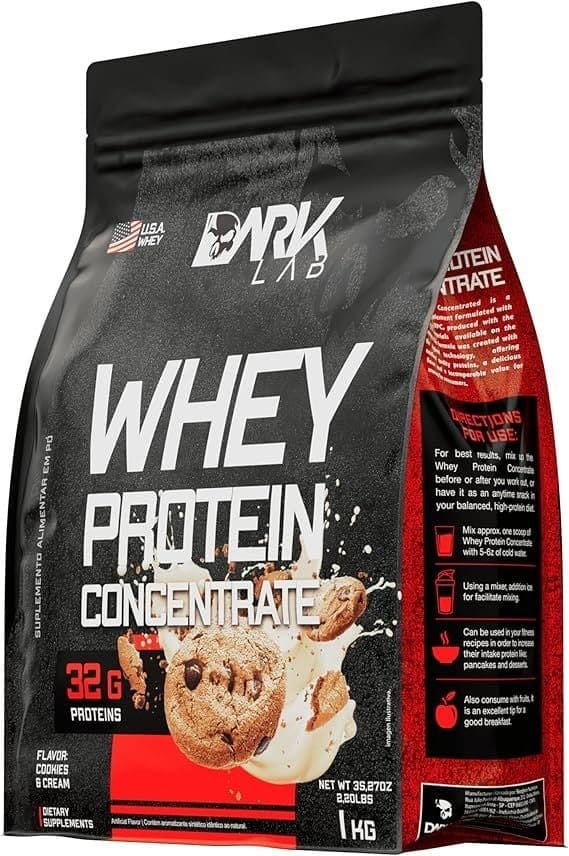 Whey Protein Concentrado Dark Lab, 1kg, Cookies & Cream, Proteína Concentrada do Soro do Leite (WPC), Ganho de Massa Muscular, Suporte Nutricional