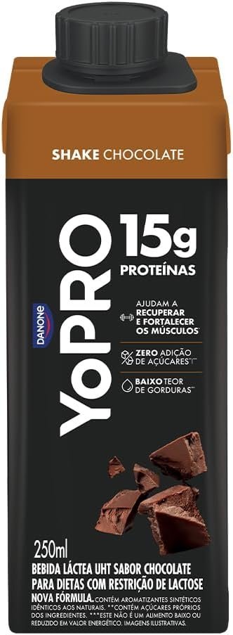 Potencialize seus treinos com YoPRO Bebida Láctea UHT Chocolate 15g de proteínas 250ml – 12 unidades. YoPRO é a marca especialista em criar produtos com alto teor de proteínas, práticos e deliciosos para quem busca uma rotina ativa e saudável. YoPRO é proteína, sabor e praticidade para sua rotina. Você pode consumir seu YoPRO Shake Proteico UHT 15g de proteínas a qualquer momento, seja como parte do seu café da manhã, como lanche entre as refeições ou antes e depois dos treinos. Sua fórmula prática e deliciosa permite que você o leve para onde quiser, seja na academia ou no trabalho. É essencial para você que busca um estilo de vida ativo e saudável, além de com o seu consumo de proteínas diárias, é um aliado para sua performance física e seu bem-estar, complementando a sua rotina de forma saudável e saborosa. Experimente e vá além! Ingredientes: leite parcialmente desnatado, concentrado proteico de soro de leite, cacau hidratado, amido modificado, concentrado proteico de leite, soro de leite em pó, enzima lactase, aromatizantes, estabilizantes celulose microcristalina, carboximetilcelulose, carragena, fosfato dipotássico e fosfato dissódico e edulcorante sucralose. NÃO CONTÉM GLÚTEN. ALÉRGICOS: CONTÉM LEITE E DERIVADOS. PODE CONTER SOJA.